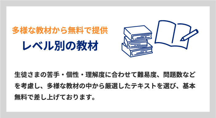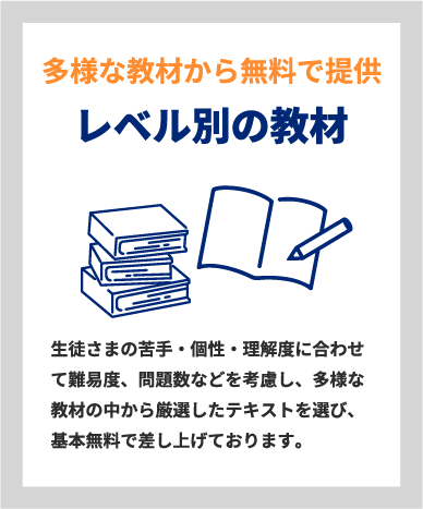 ※ご家庭からのご要望で他の問題集を使用する場合については、別途費用をいただく場合がございます。